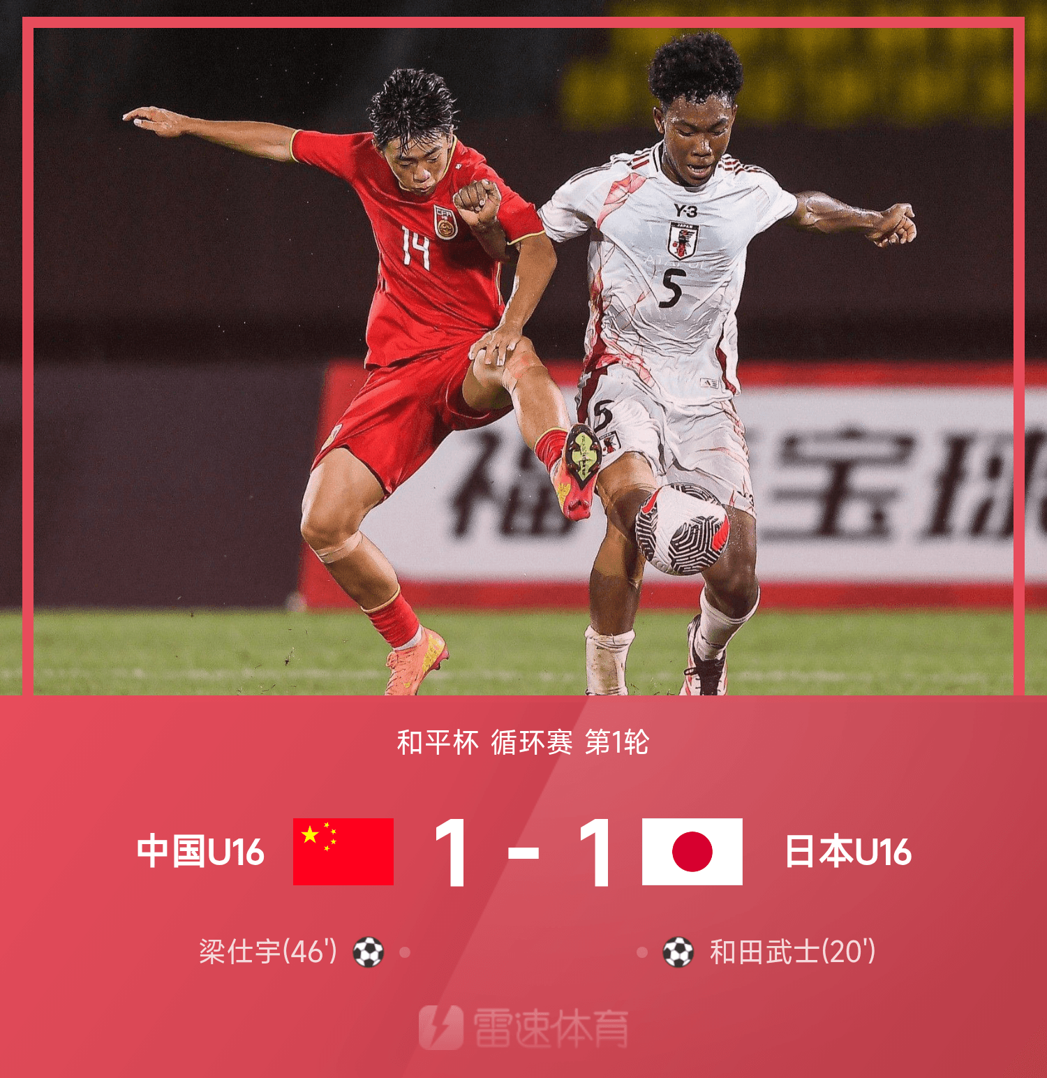 和平杯战报:梁仕宇门前建功,帅惟浩失单刀,中国U16队1-1日本U16队